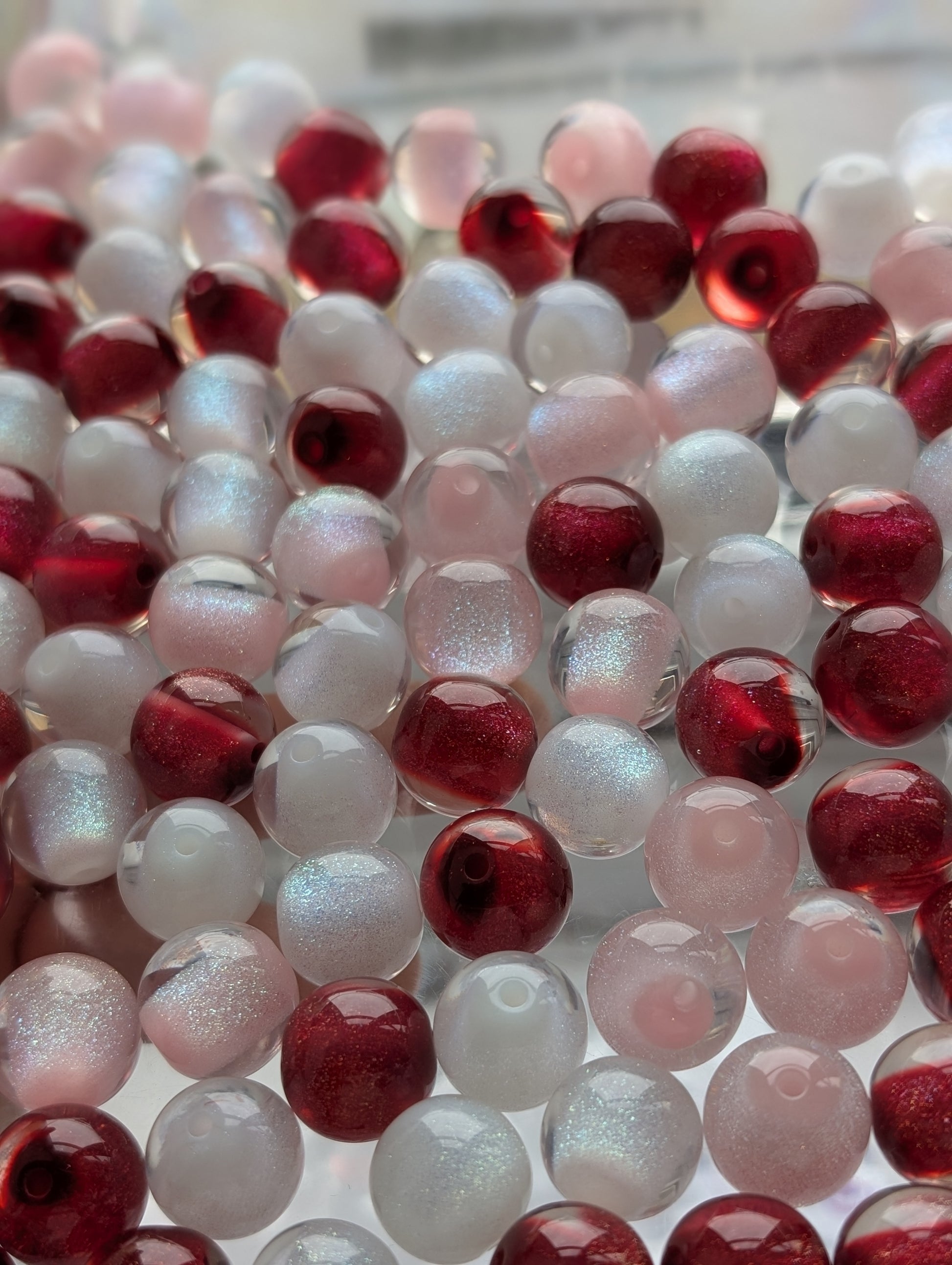 These adorable beads are a love mix of pinks,red and white