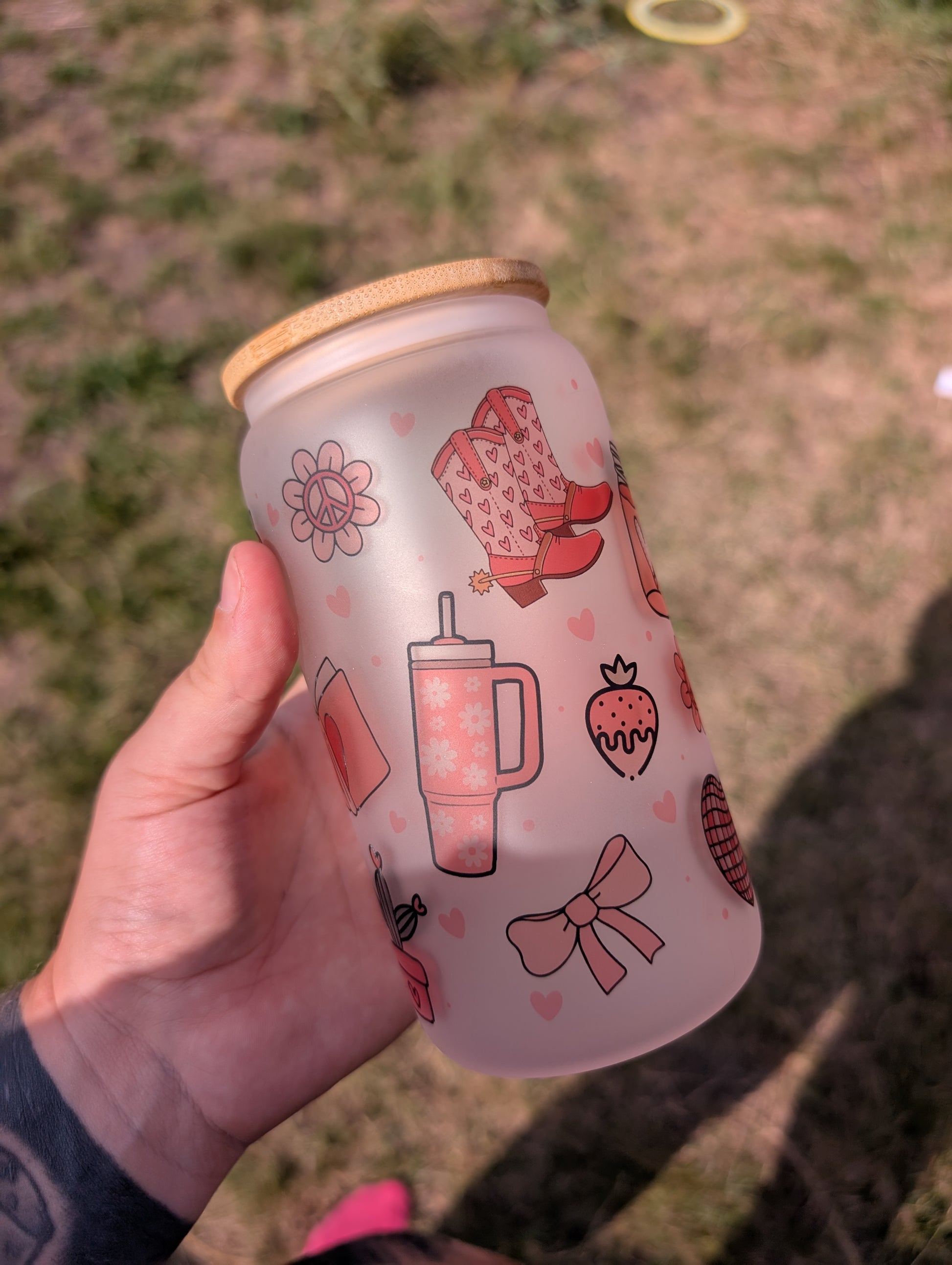 These 16oz frosted glass cans with a cute design will be the perfect gift for anyone!