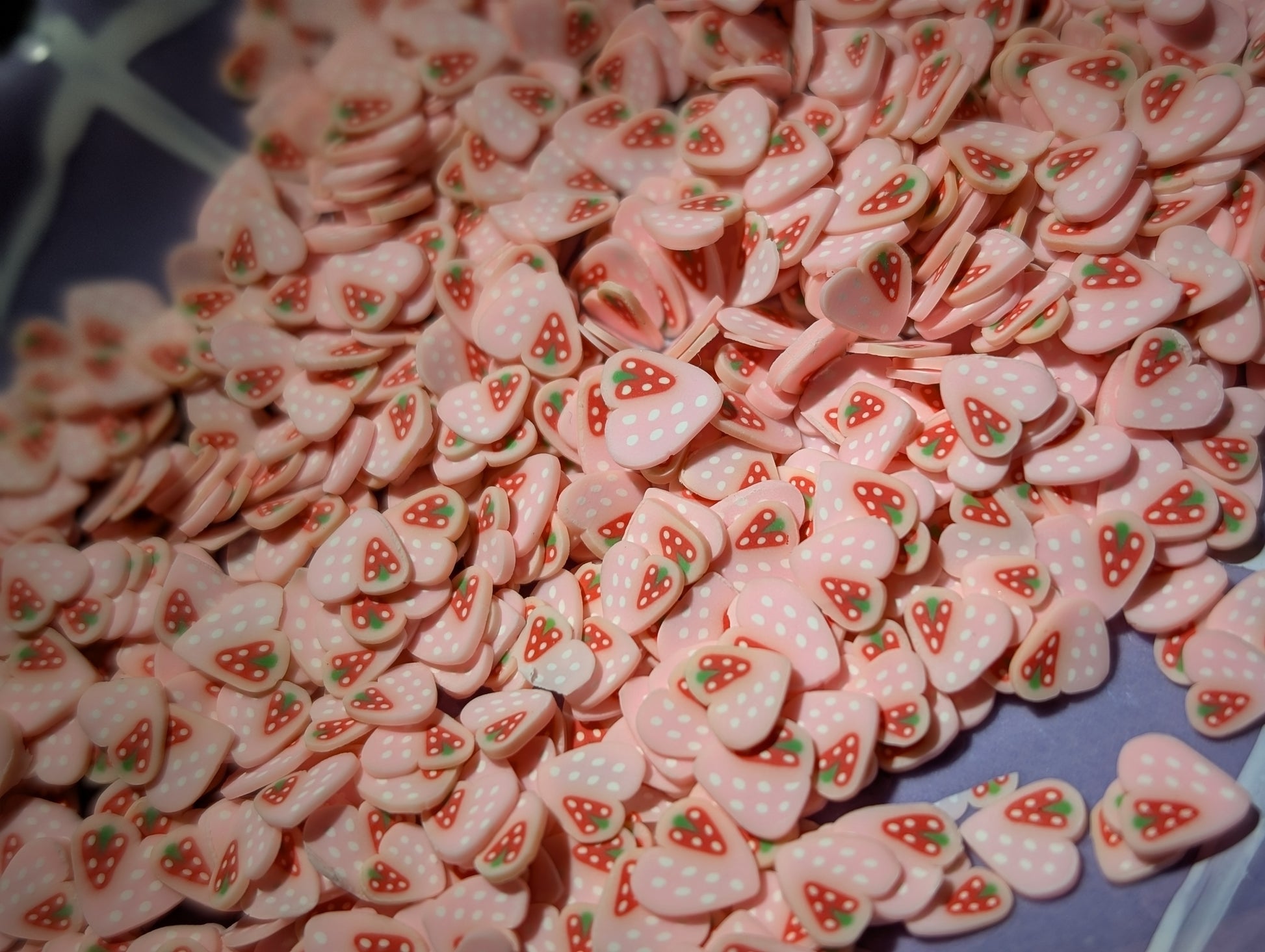 Strawberry heart- polymer clay slices