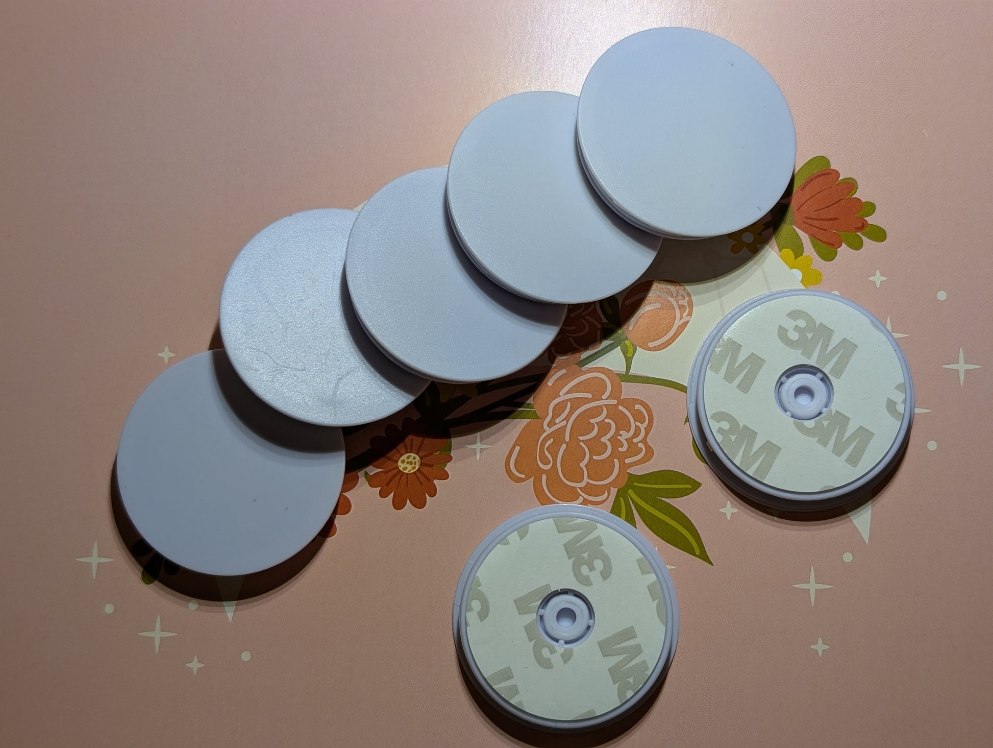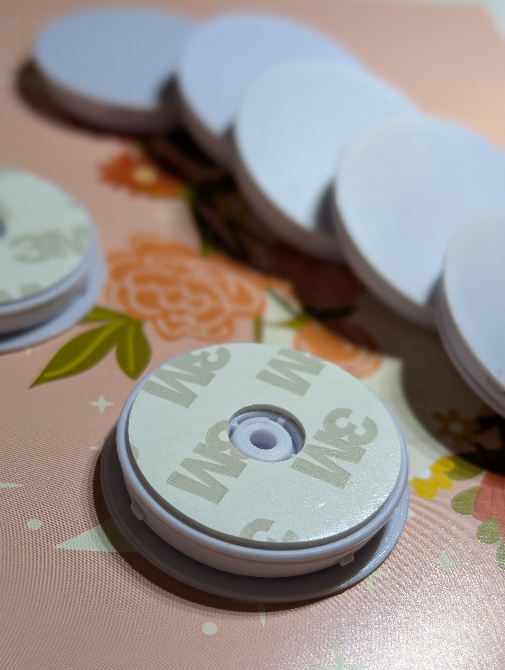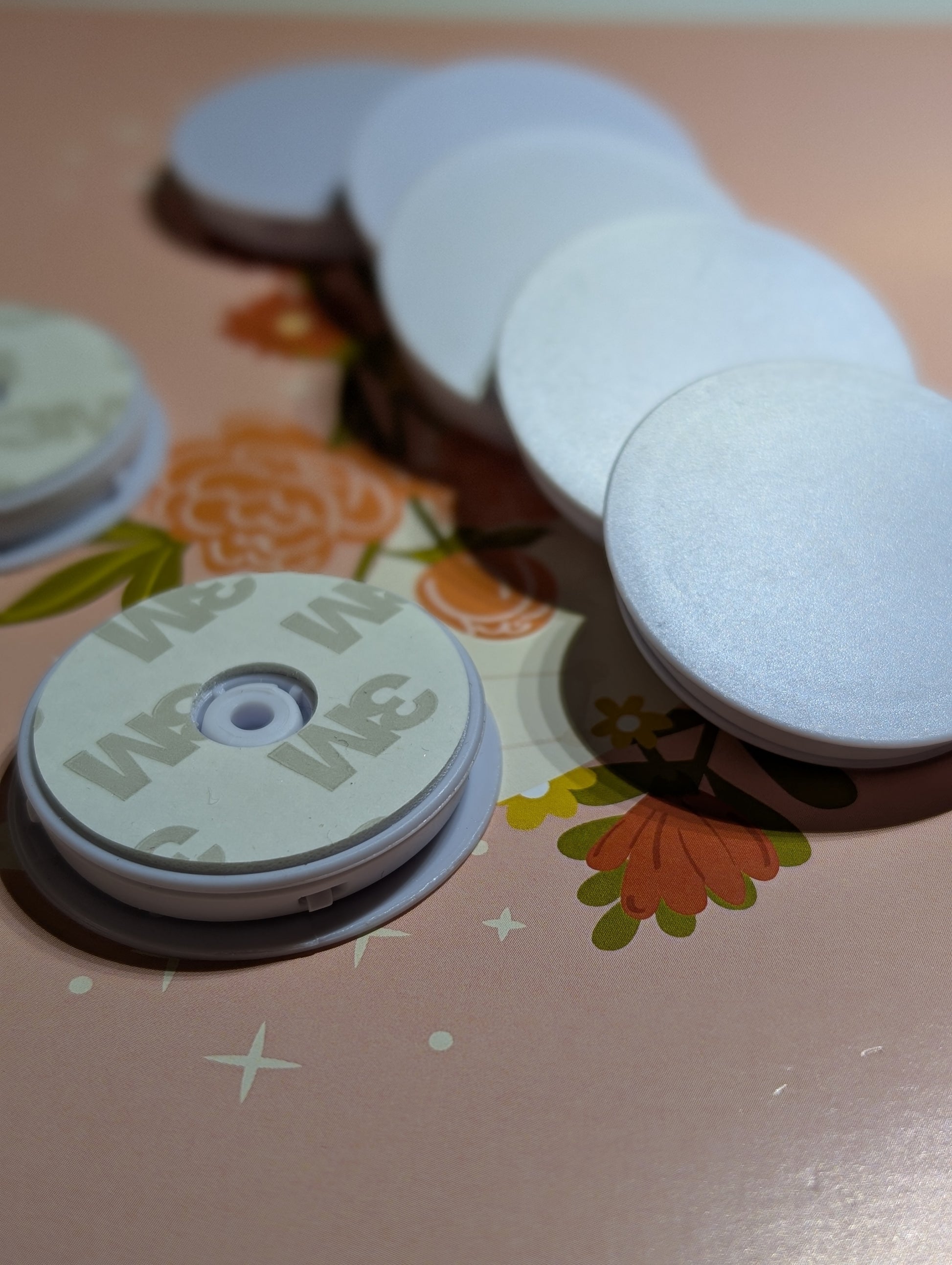 These pop socket blanks come with a sticky pad attached ready to add on to the back of a phone.